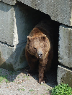 Back to the station and a short ride to Bern, the capital of Switzerland. I visited on a much sunnier day back in April so I was able to confidently lead us to our first hostel, the clean and quiet Hotel Glocke. We dropped our bags, shook off the wet, then went into the streets for a brief walk around the Old Town and a hunt for food. My first destination was the bear pits. The bears are the symbol of the city (Bern=bear) and a pit stop is essential. We crossed the soaring stone bridge over the Aar River and were confronted with this sign:
